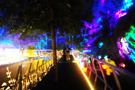- Hutan Menyala & Magis: Menjelajahi hutan pinus yang dihiasi lampu warna-warni, instalasi jamur, dan audio visual, menciptakan suasana seperti negeri dongeng, terutama dengan adanya kabut tipis.